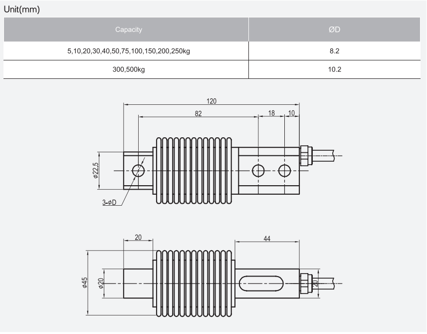 LP7120波紋管稱重傳感器傳感器安裝尺(chǐ)寸